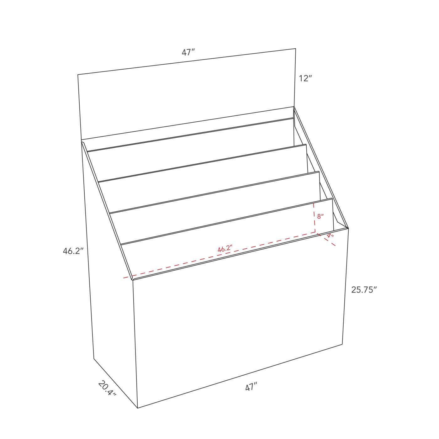 | Tablettes | Dimensions intérieures : 46,2 x 4 x 8 po |