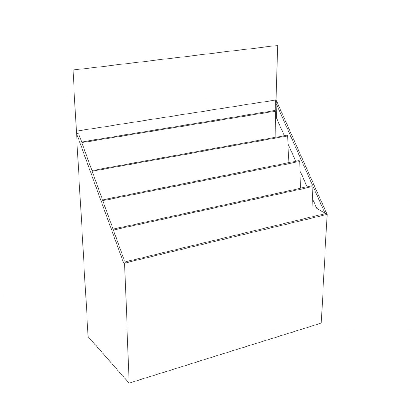 Présentoir de plancher à 4 étages en carton – demi-palette – avec 4 tablettes et une en-tête. Pour livres, agendas, calendriers, filières et plus.