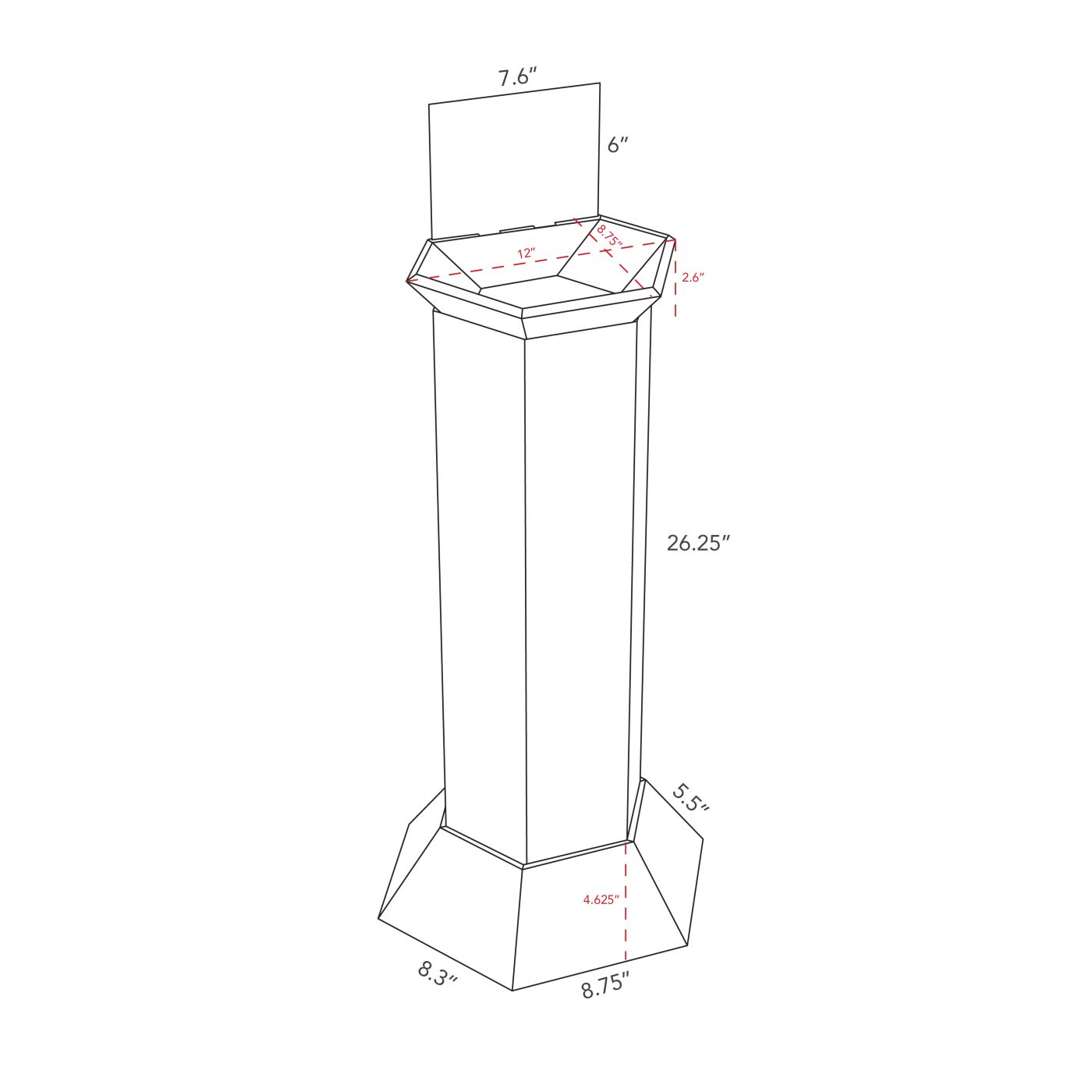 | Présentoir | Hauteur de la portion visible : 26,25 po |