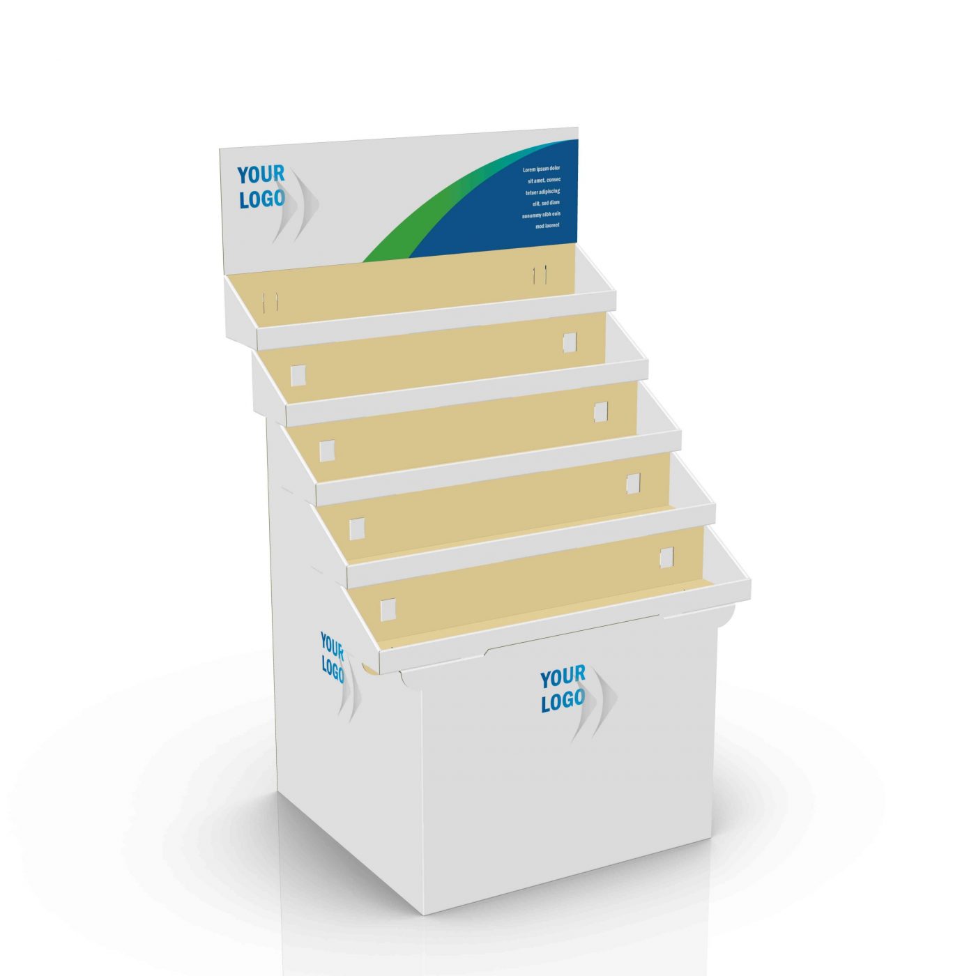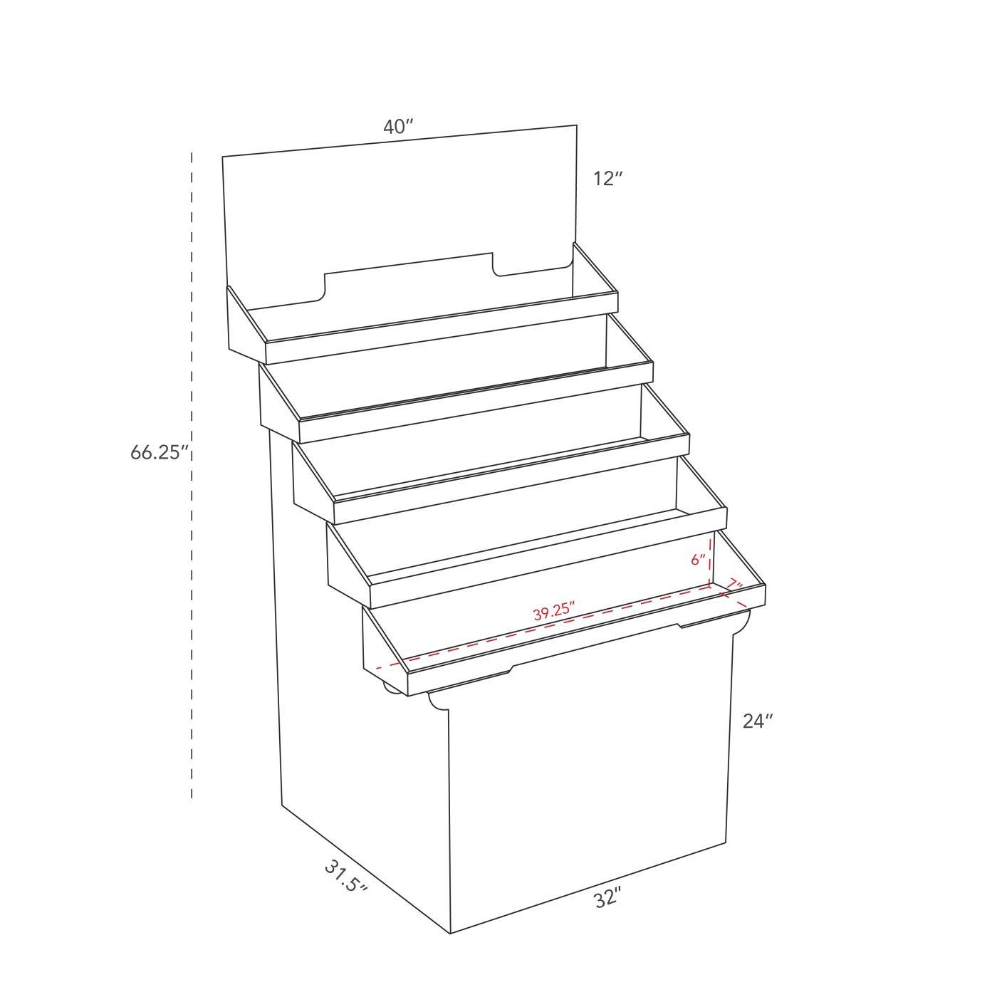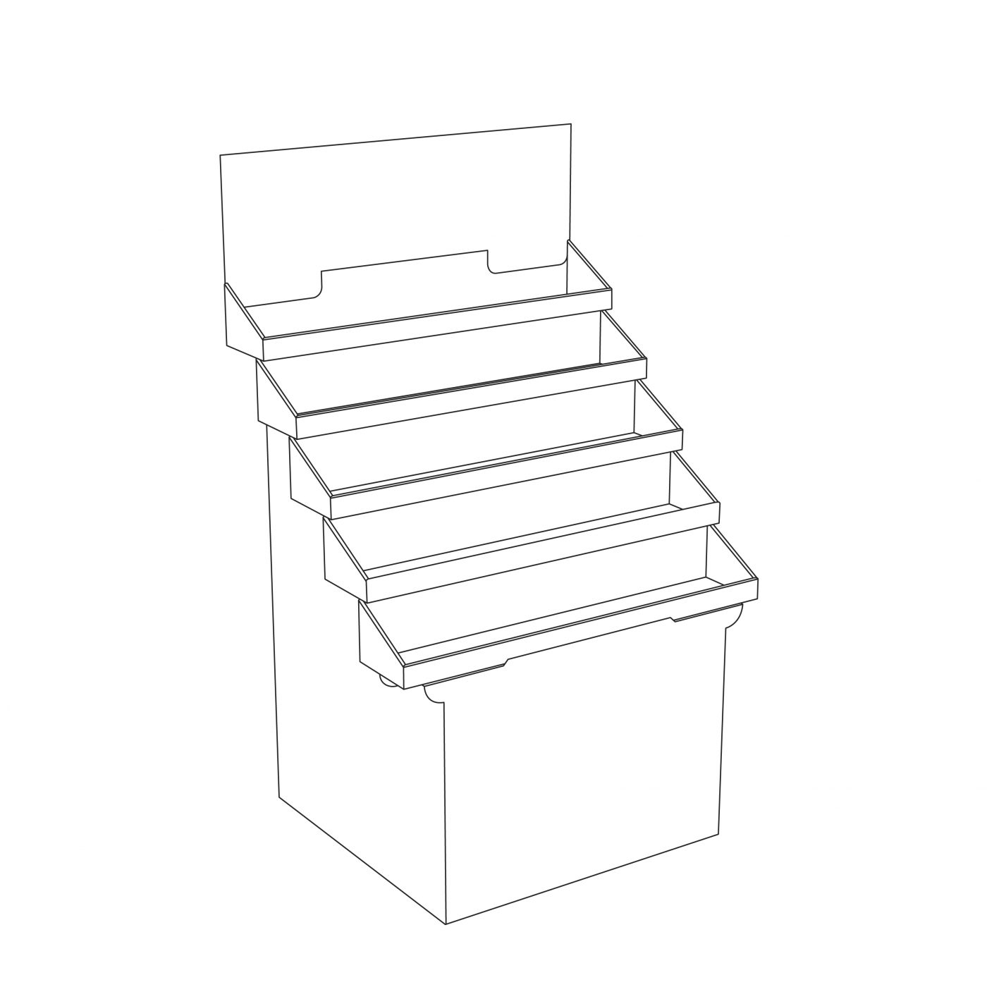 Grand présentoir de plancher en carton à 5 étages avec en-tête et 5 présentoirs / 5 tablettes empilés. Pour chandelles, produits naturels, accessoires et plus.