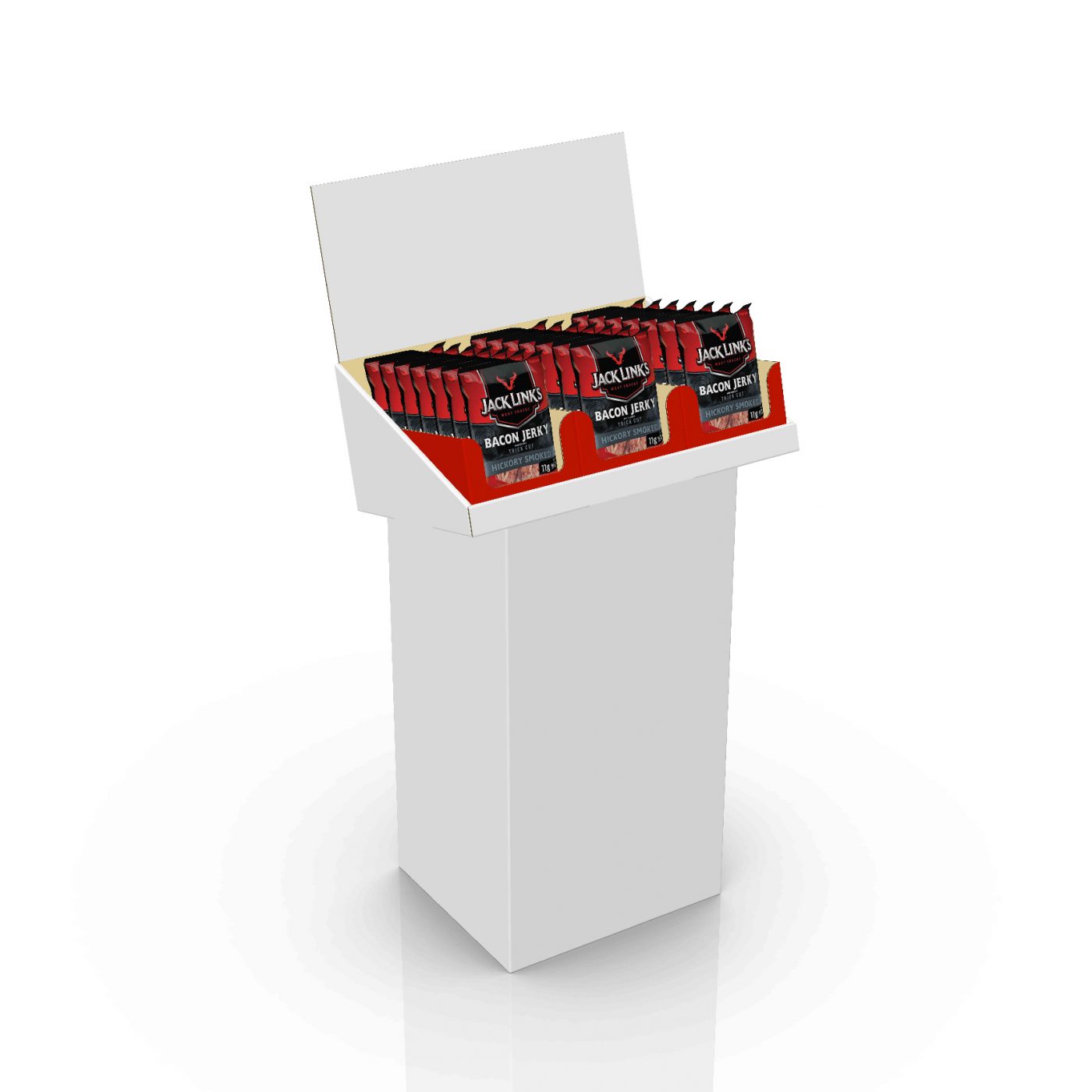 1 tier Cardboard display Dump Bin/dumpbin with base and tray with header. For food products, bottles, cans, jars and more.