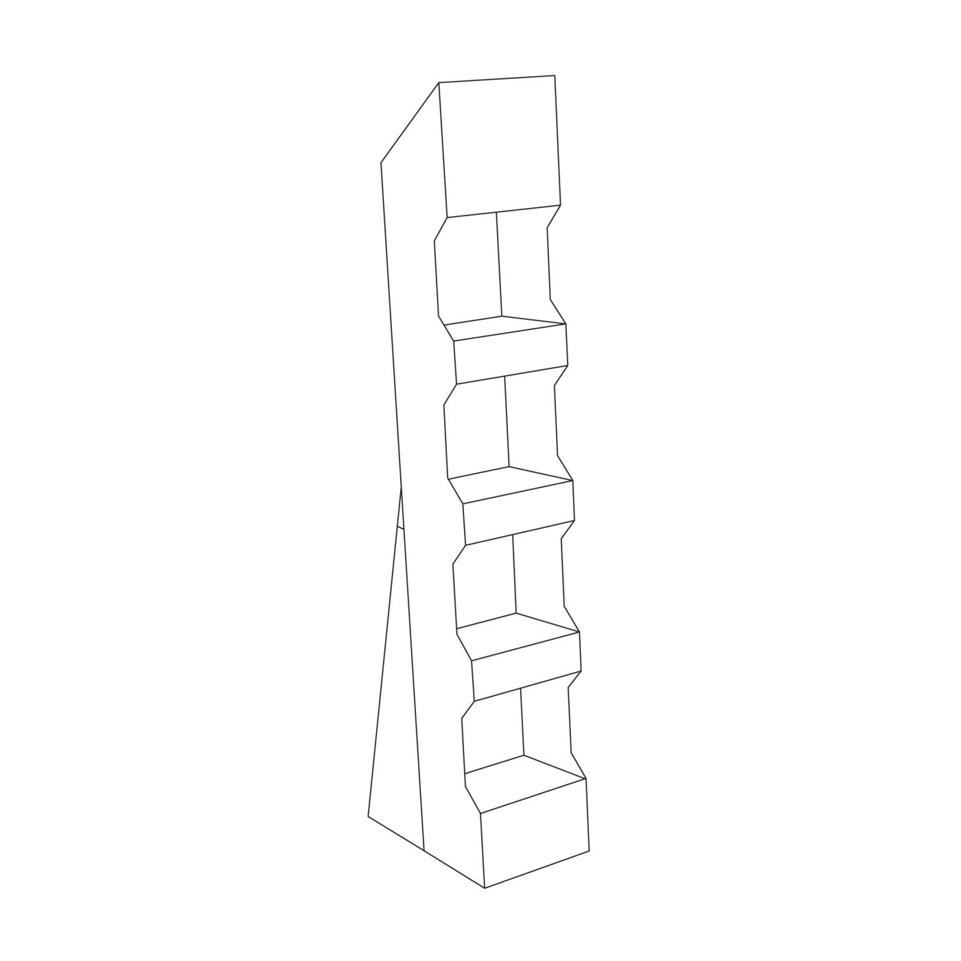 4 tier Cardboard floor display with shelves and header, with an angled base. For spice bottles, pharmaceutical products, toys, food, accessories and more.