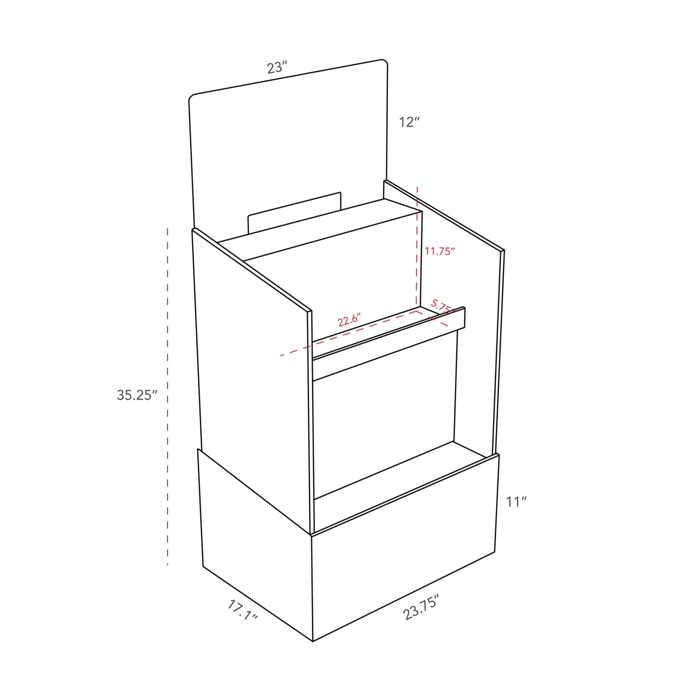 | Tray | 23.75 x 17.1 x 35.25 in |