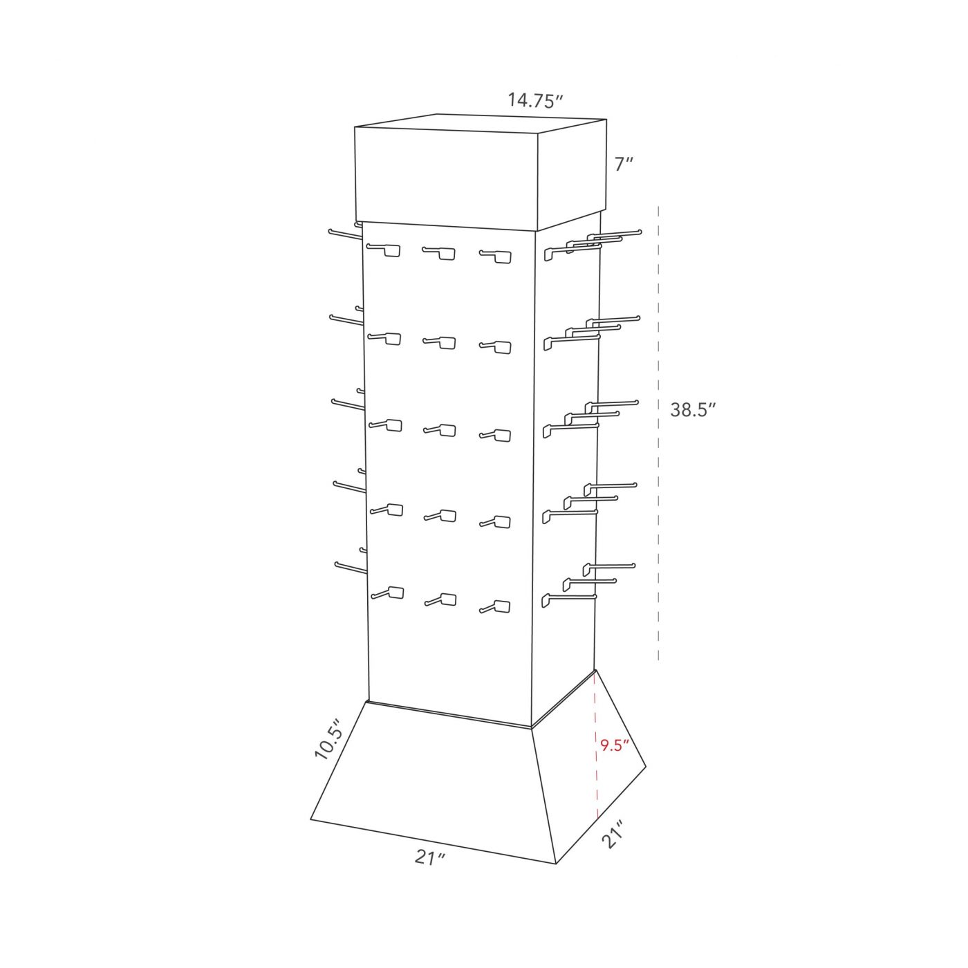 Dimensions 21 × 21 × 55 in