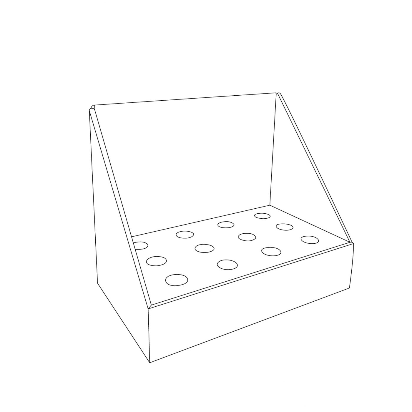 Présentoir de comptoir avec insertions/ronds. Pour bouteilles de vanille, parfums, baume à lèvres et plus.