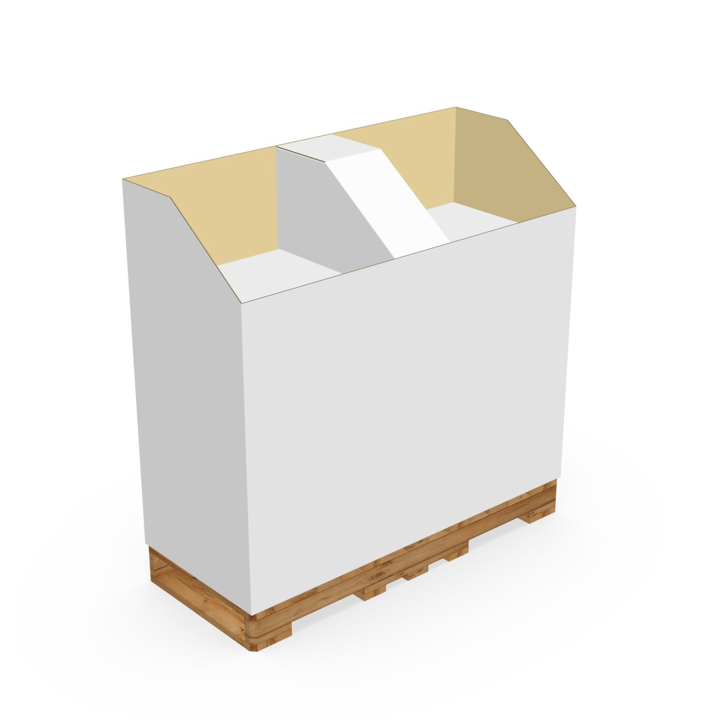 1-tier Large Custom Cardboard display – Half Pallet with 2 sides and a separator in the middle. For bottles. Made for large retail stores and warehouses.