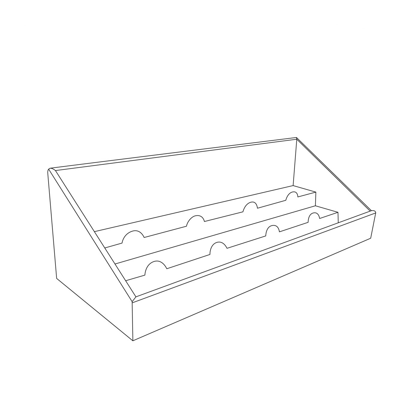 3 tier Custom Cardboard counter display with steps/shelves, for cards, games, cosmetics, accessories and more.
