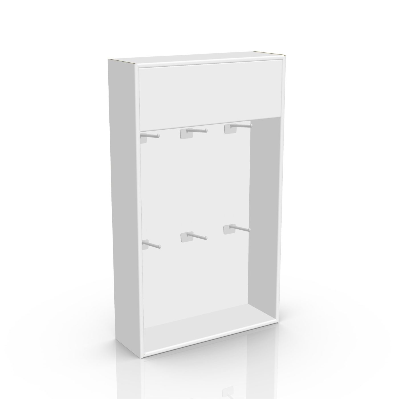 24-in Cardboard Sidekick with 6 pegs and a header. Designed to be wall mounted. For accessories, spices, cosmetics, games and more. Various peg positions (see image).
