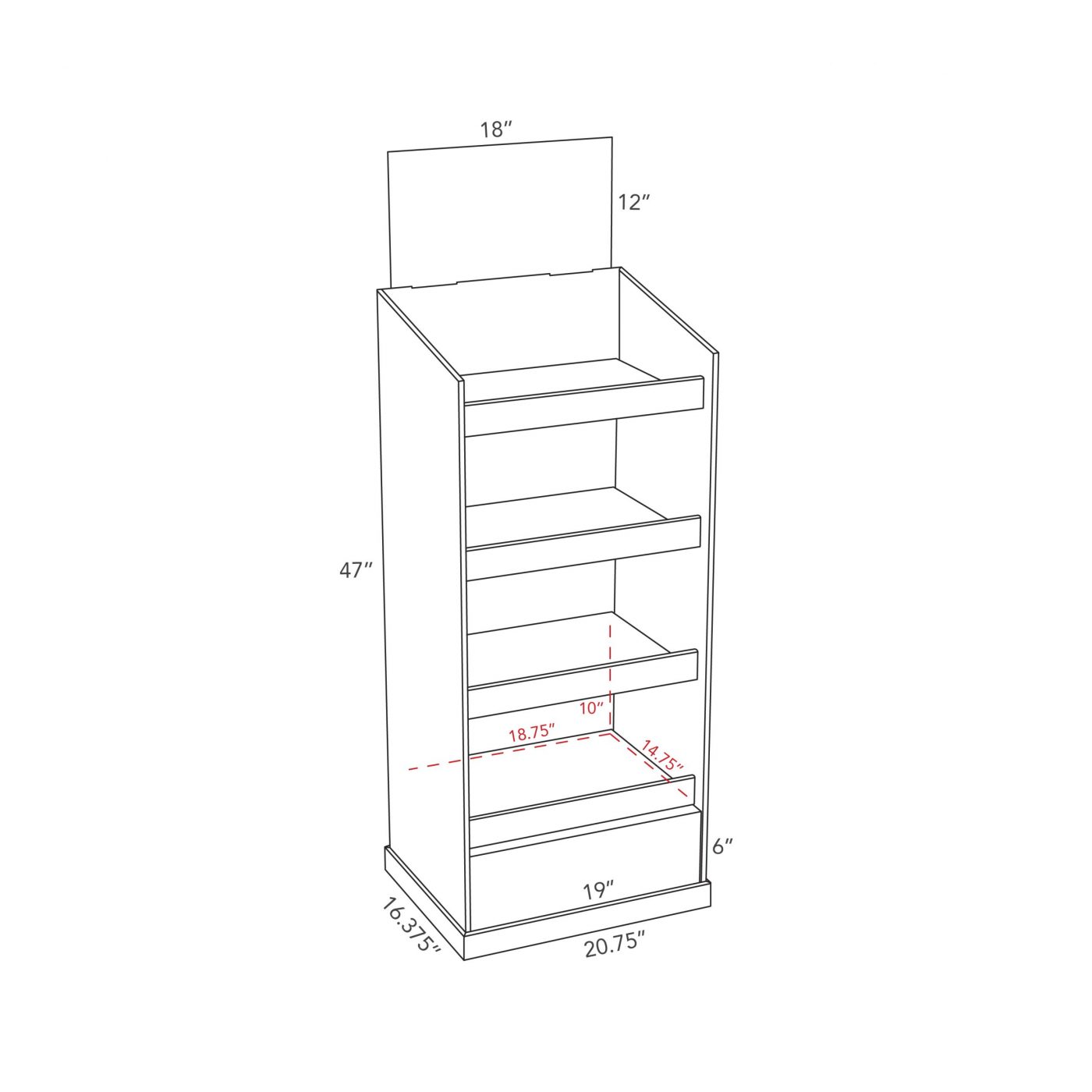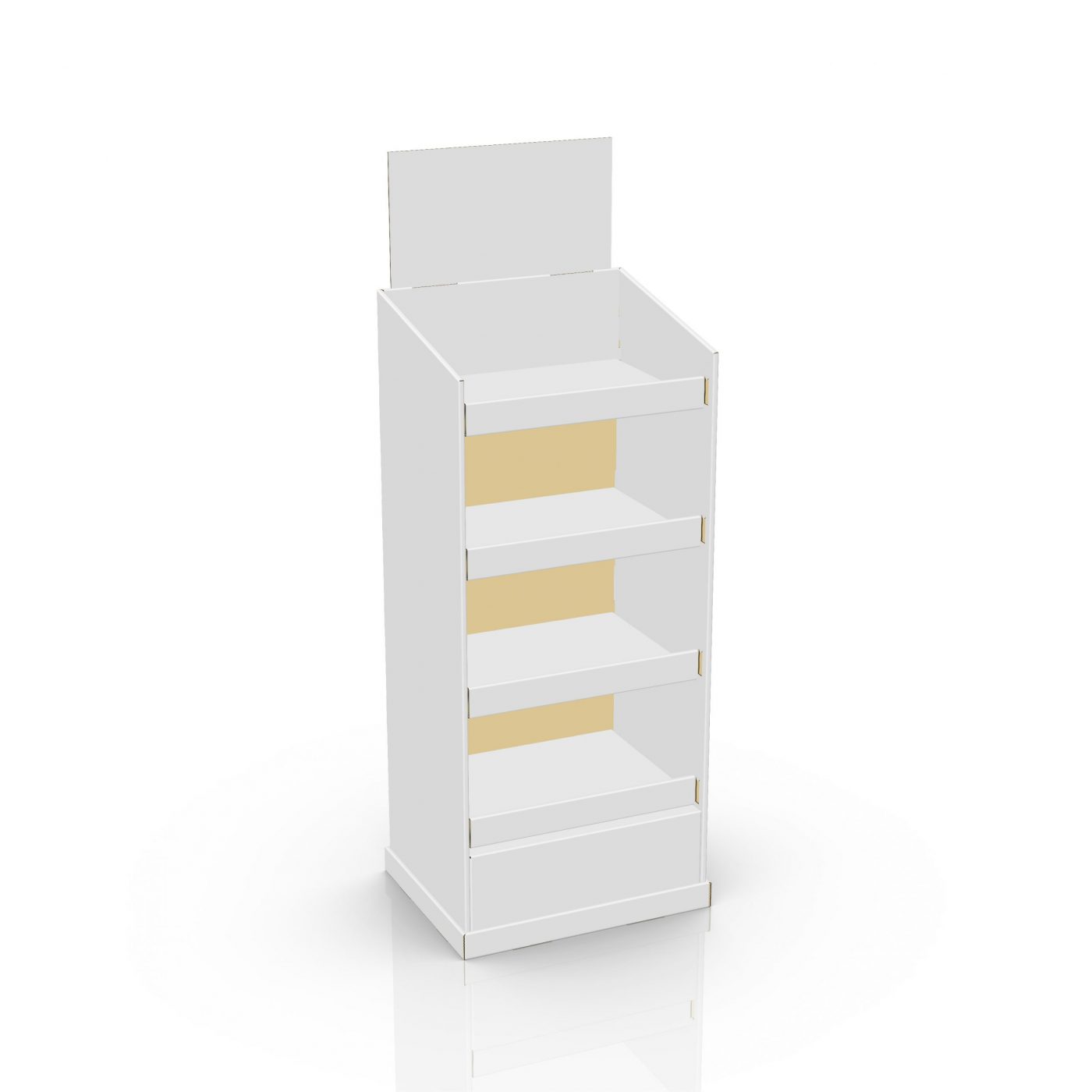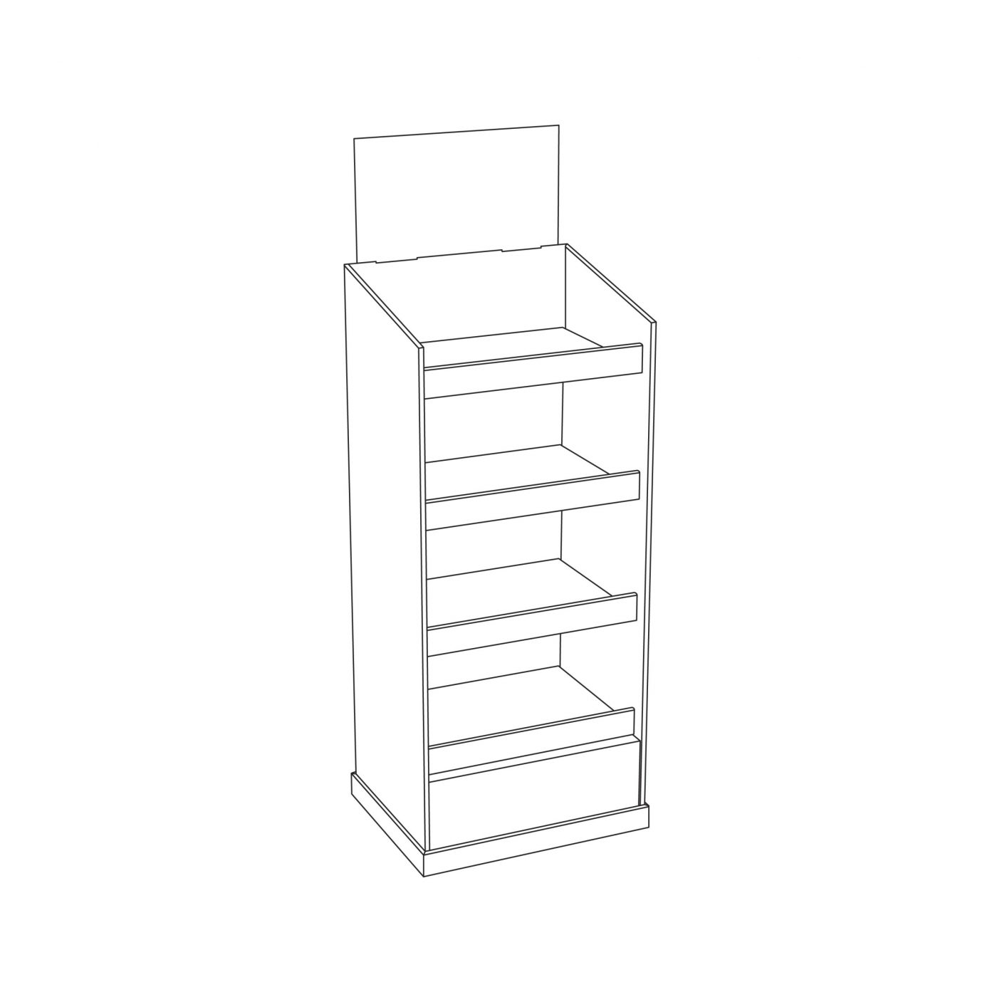 4 tier Custom Cardboard floor display with header and 4 shelves. Can support bottles and cans.