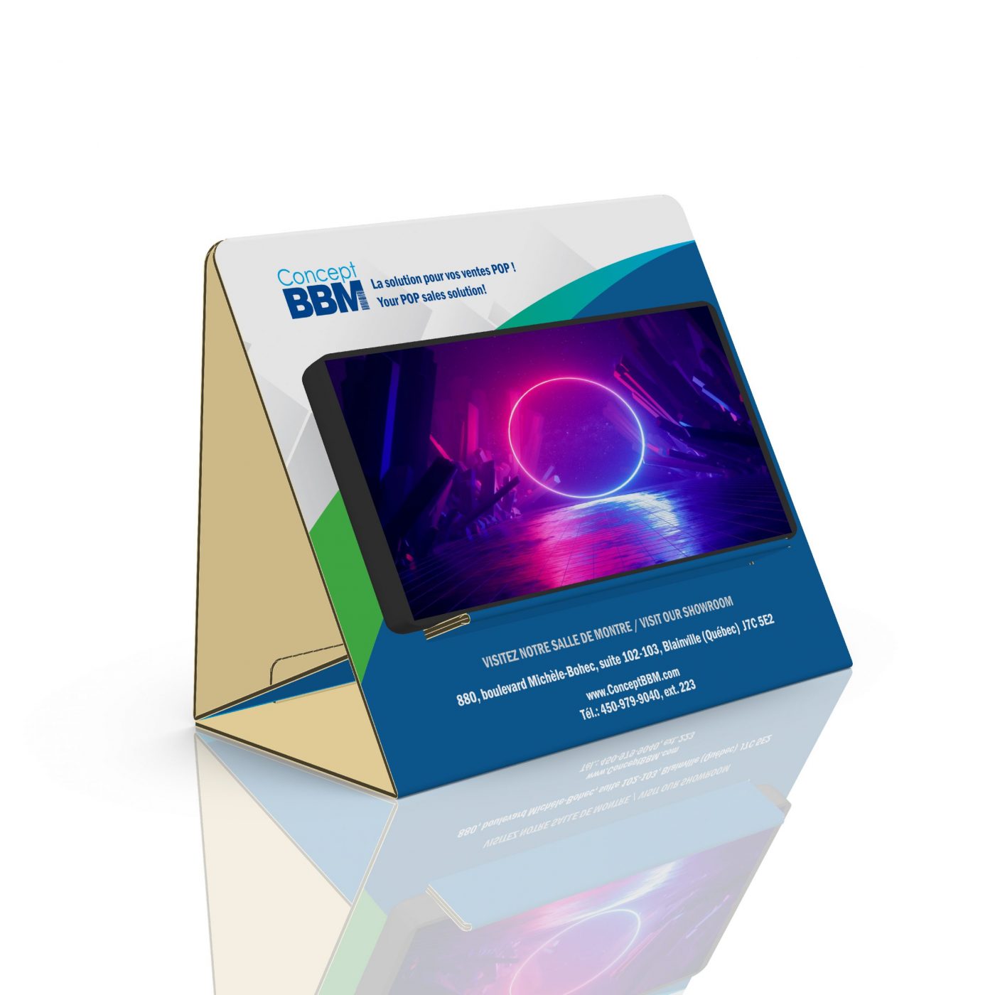 Cardboard phone stand promotional item with custom artwork, easy to assemble - 3d