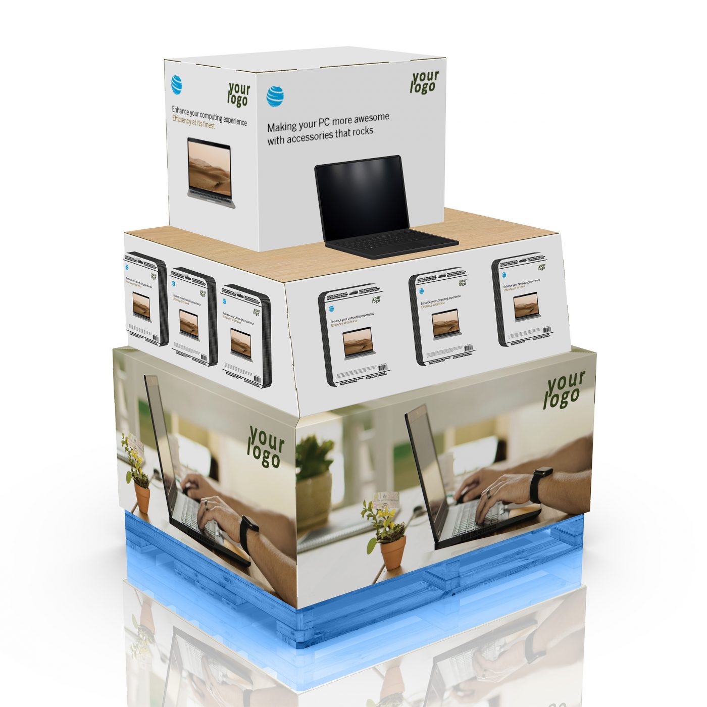 48” x 40” Multimedia pallet with 6 pegs designed to hold up to 10 voucher cards each (90 cards total). For laptop, computer, tablet and more.