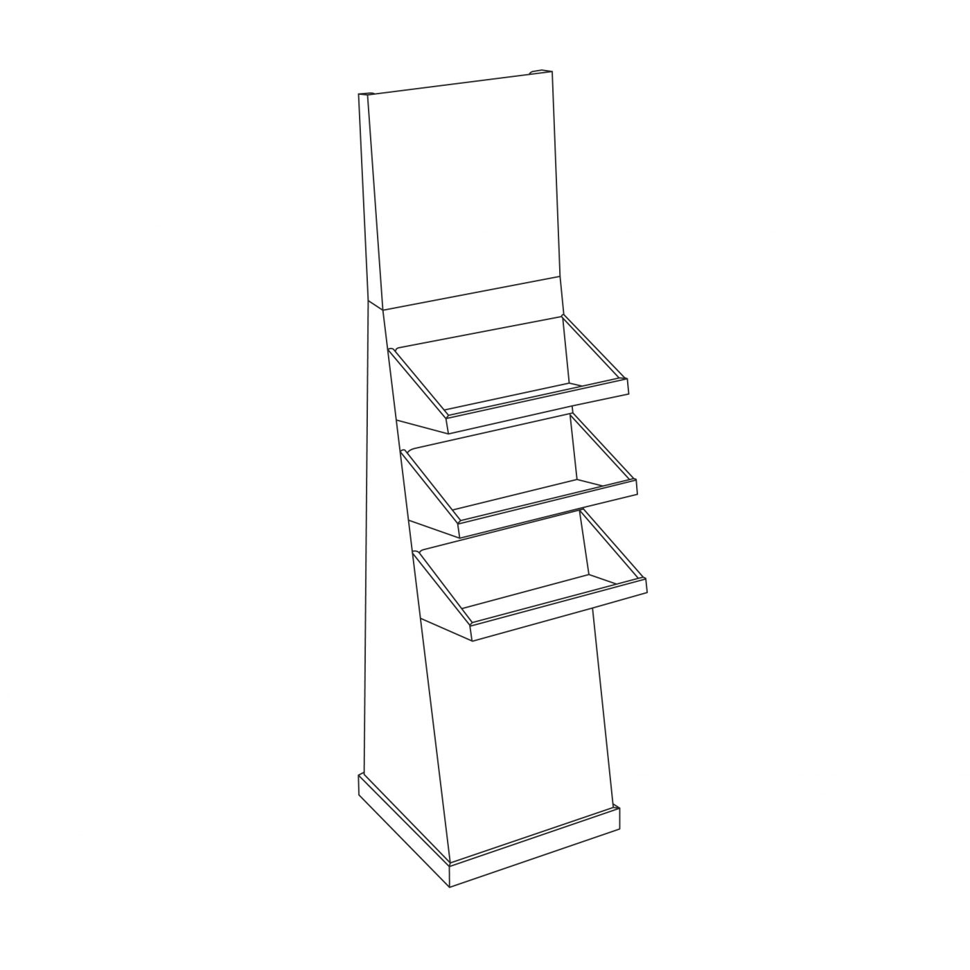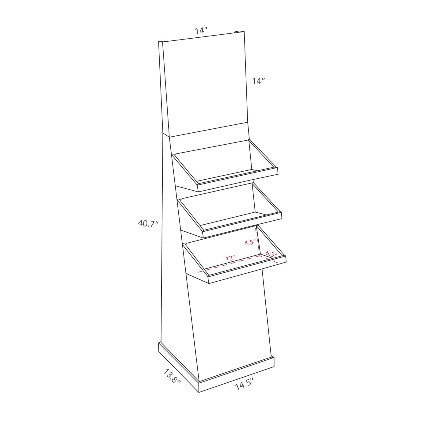 Présentoir de plancher à trois étages en carton avec en-tête et 3 présentoirs en guise de tablettes. Pour produits naturels, cosmétiques et plus.