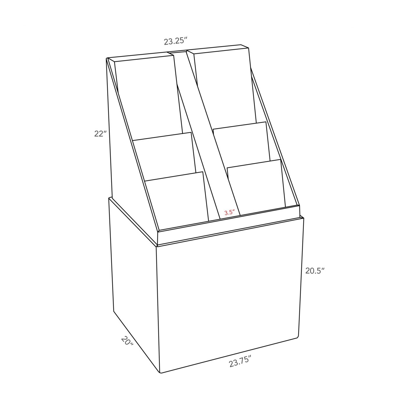 3 tier Custom Cardboard Quart Pallet floor display with a tray at the top for books or files, separated in the middle (6 slots / 6 shelves)