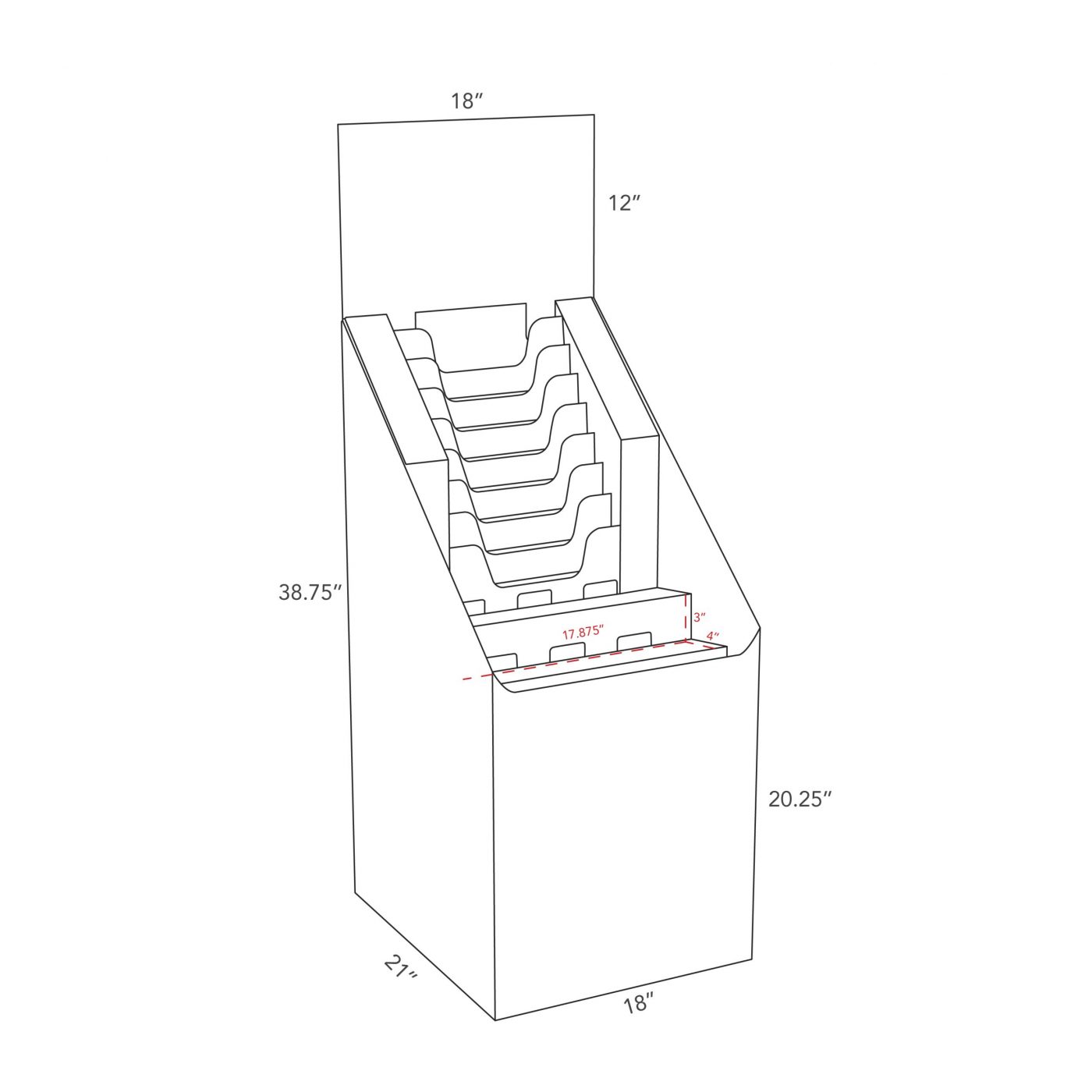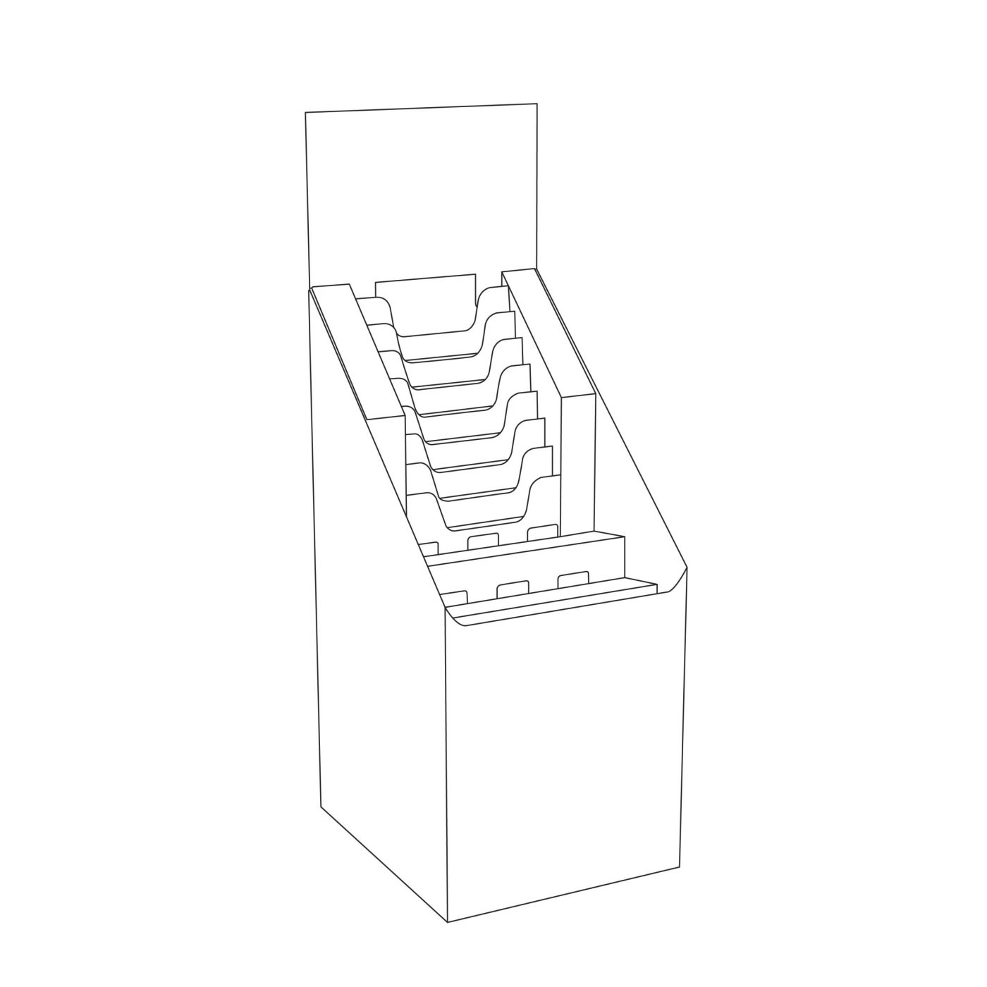 3 tier Cardboard floor display with header, 2 shelves and 8 file holders / pockets on the last tier. For calendars, agendas, pamphlets and more.
