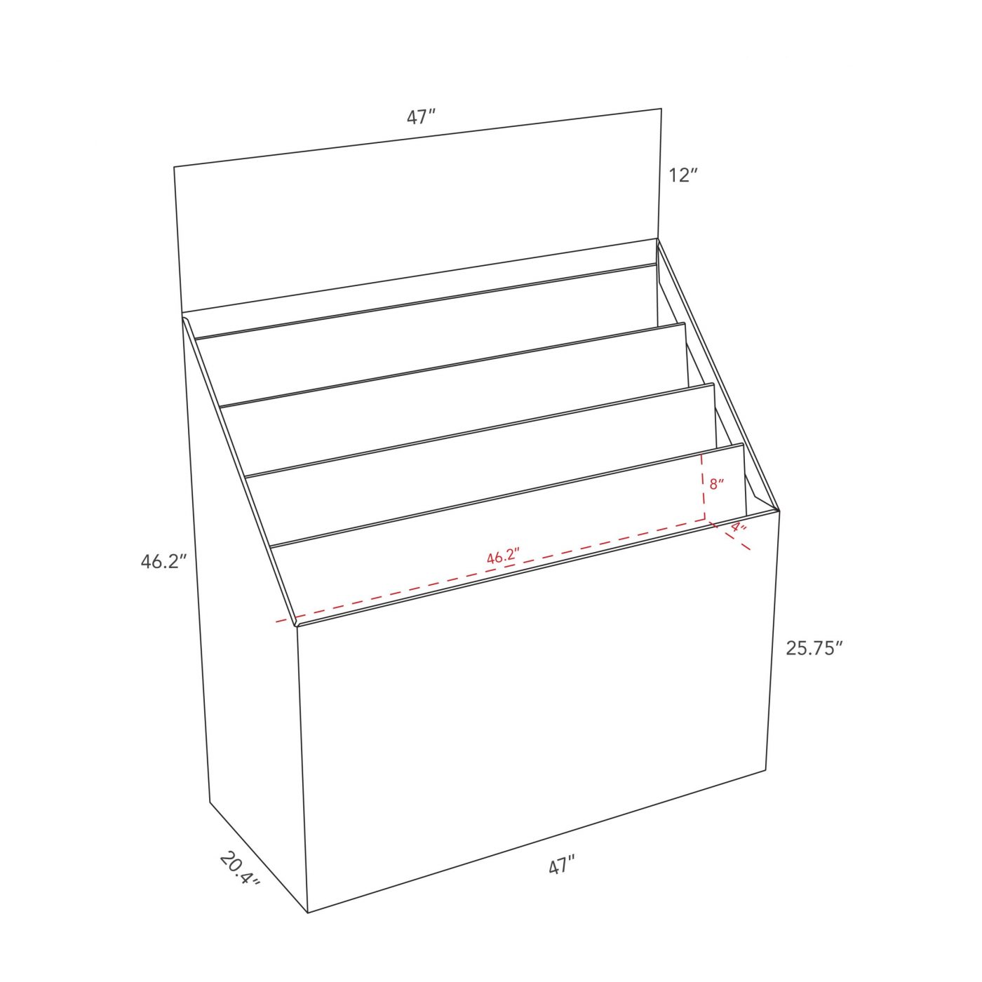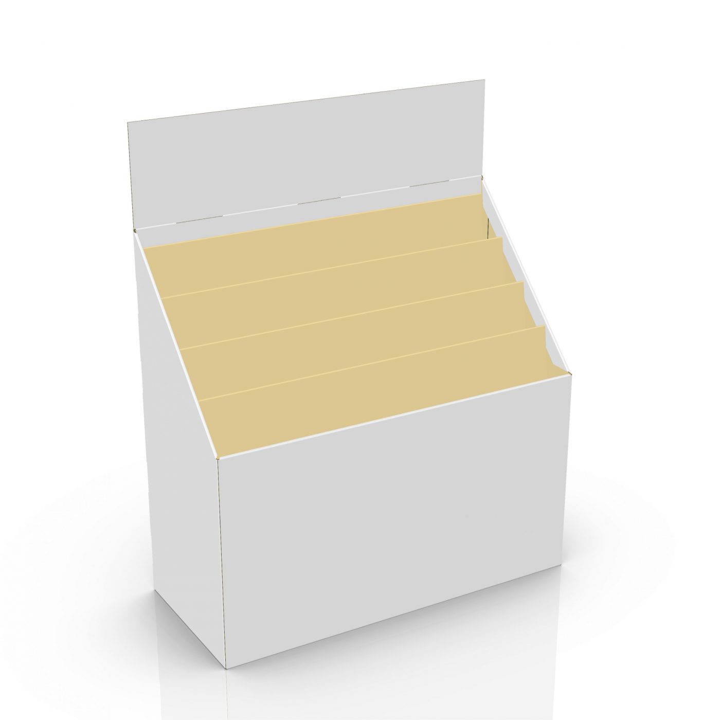 4 tier Large Custom Cardboard display – half pallet – with 4 shelves. For books, agendas, calendars, files and more.